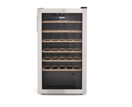 O modelo possui capacidade de 34 garrafas (padrão Bordalesa), e opera na temperatura de 5 °C a 20 °C, permitindo o armazenamento de qualquer tipo de vinho. Conta com porta em aço inoxidável, prateleiras em madeira e tecnologia Low-E, que minimiza a entrada de luz UV, protegendo o vinho e reduzindo o acúmulo de umidade na porta. É perfeita para compor o ambiente ao lado da Beer Center Invita Inox 85 litros, garantindo um design uniforme ao projeto.