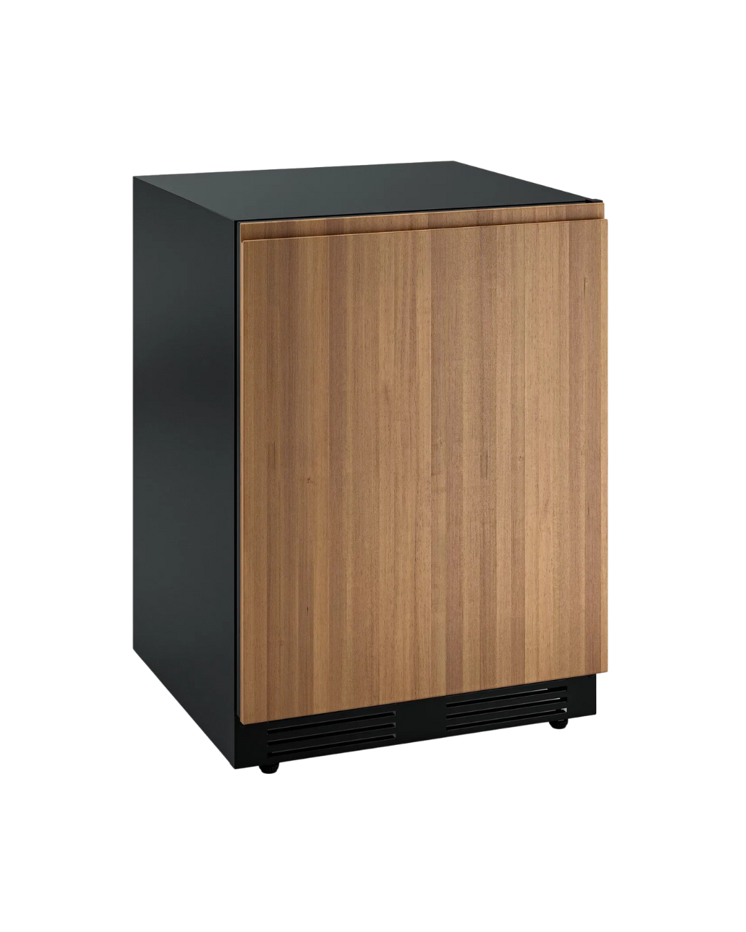 Escolha o acabamento e puxadores que desejar ao revestir a porta da cervejeira, criando um embutimento perfeito e alinhado com a frente dos móveis do ambiente, sem necessidade de frestas laterais para ventilação.
