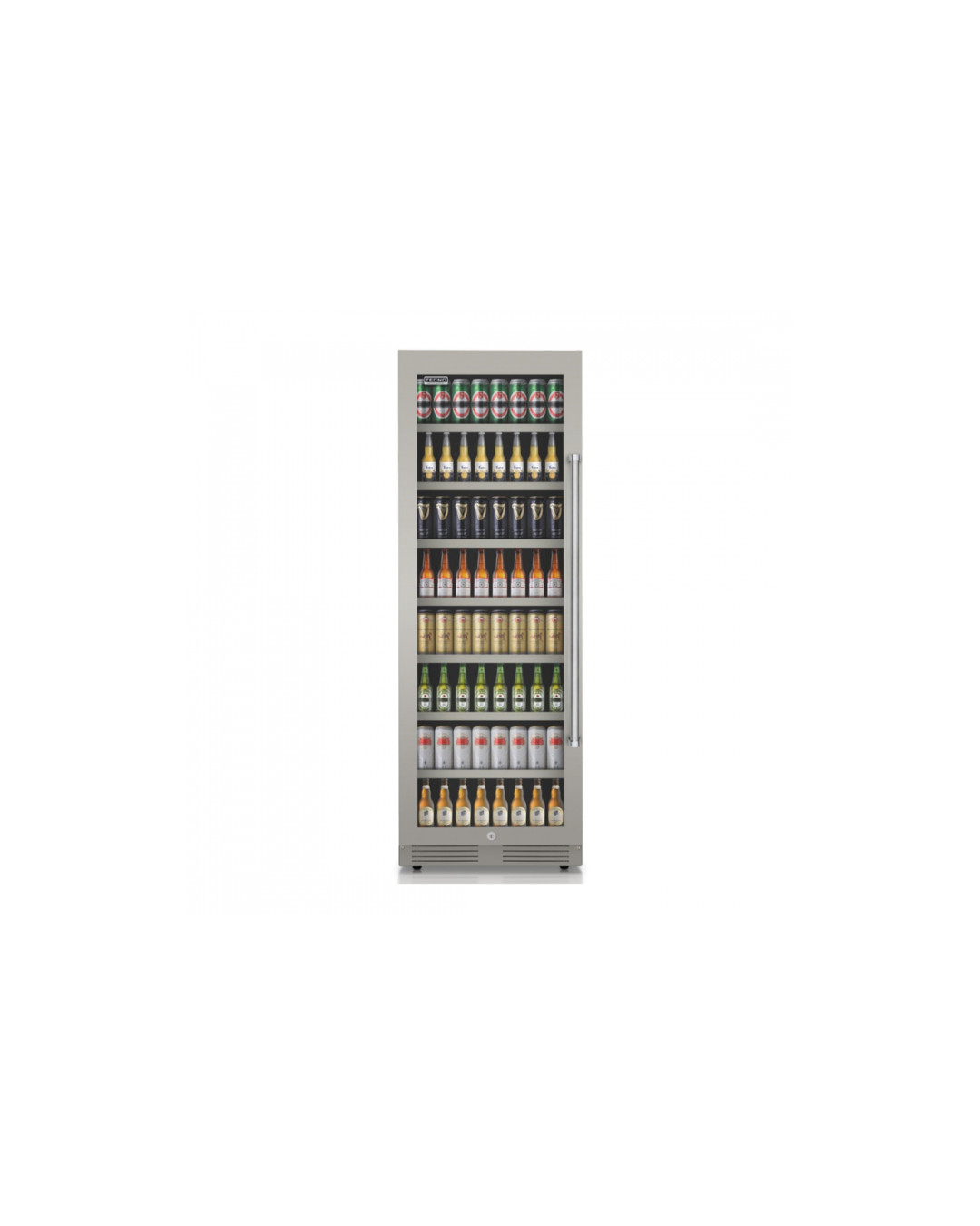 As 7 prateleiras em aço com molduras frontais em aço escovado tem alturas reguláveis para acomodar garrafas e latas de todos os tamanhos e também barris de 5 litros.