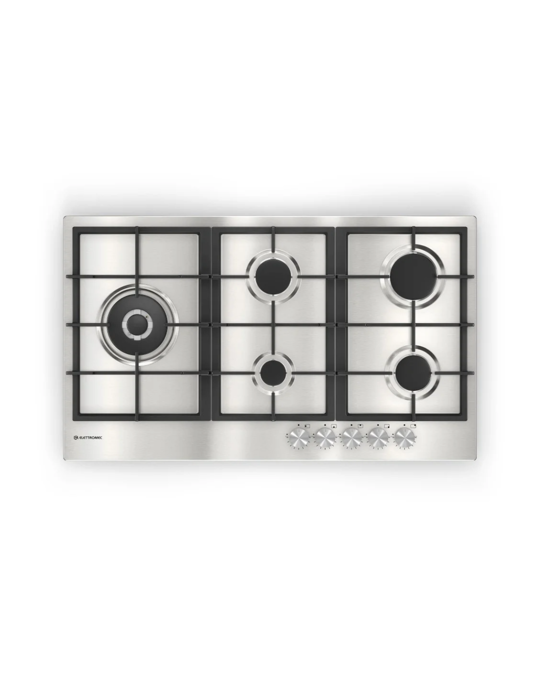 90cm de largura, possui 5 queimadores com 1 Dual Flame lateral de 4kW de potência que permite uma utilização mais prática e segura.