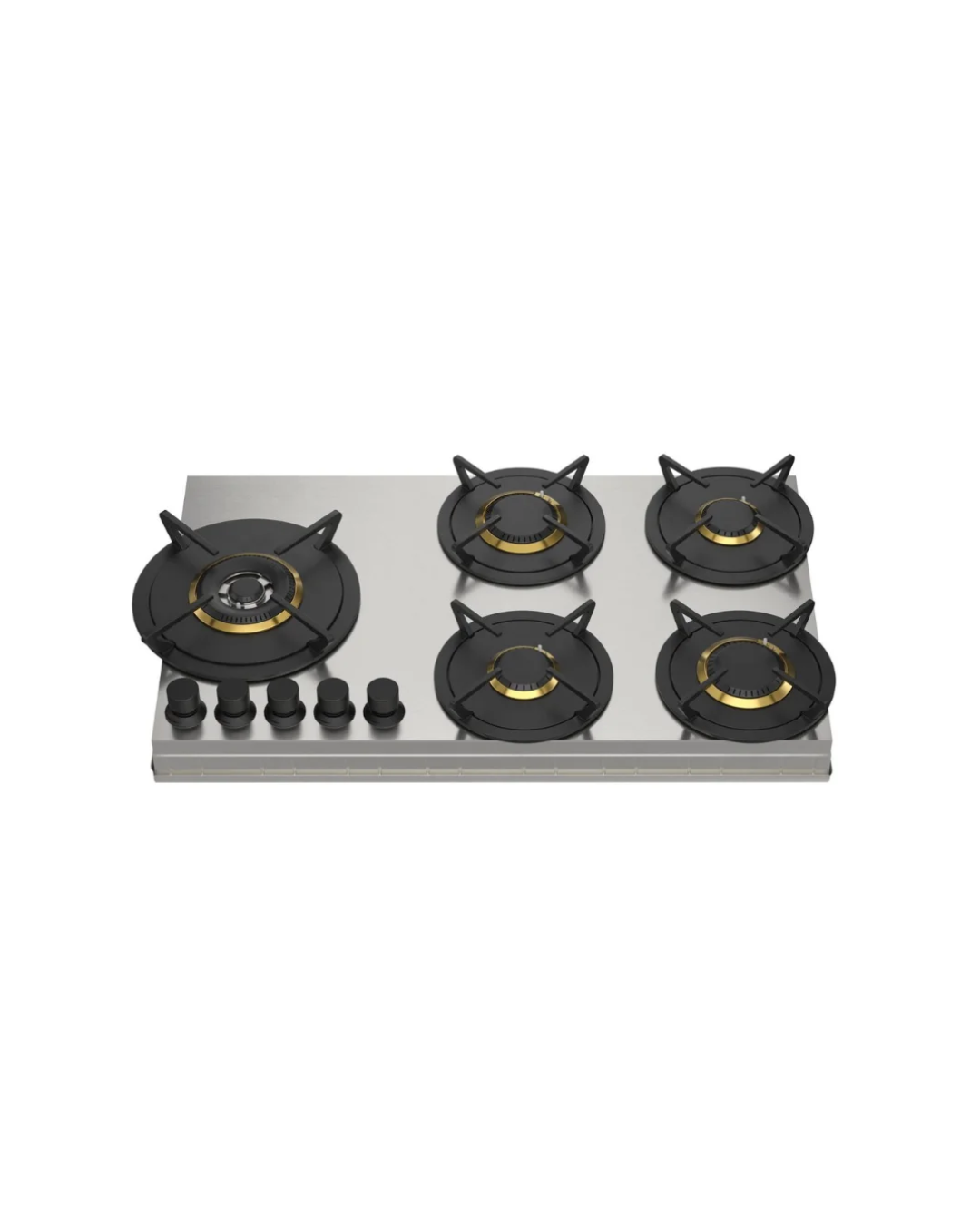Modelo para instalação direta na bancada, conta com 5 queimadores, acendimento a gás e 90 cm de largura.