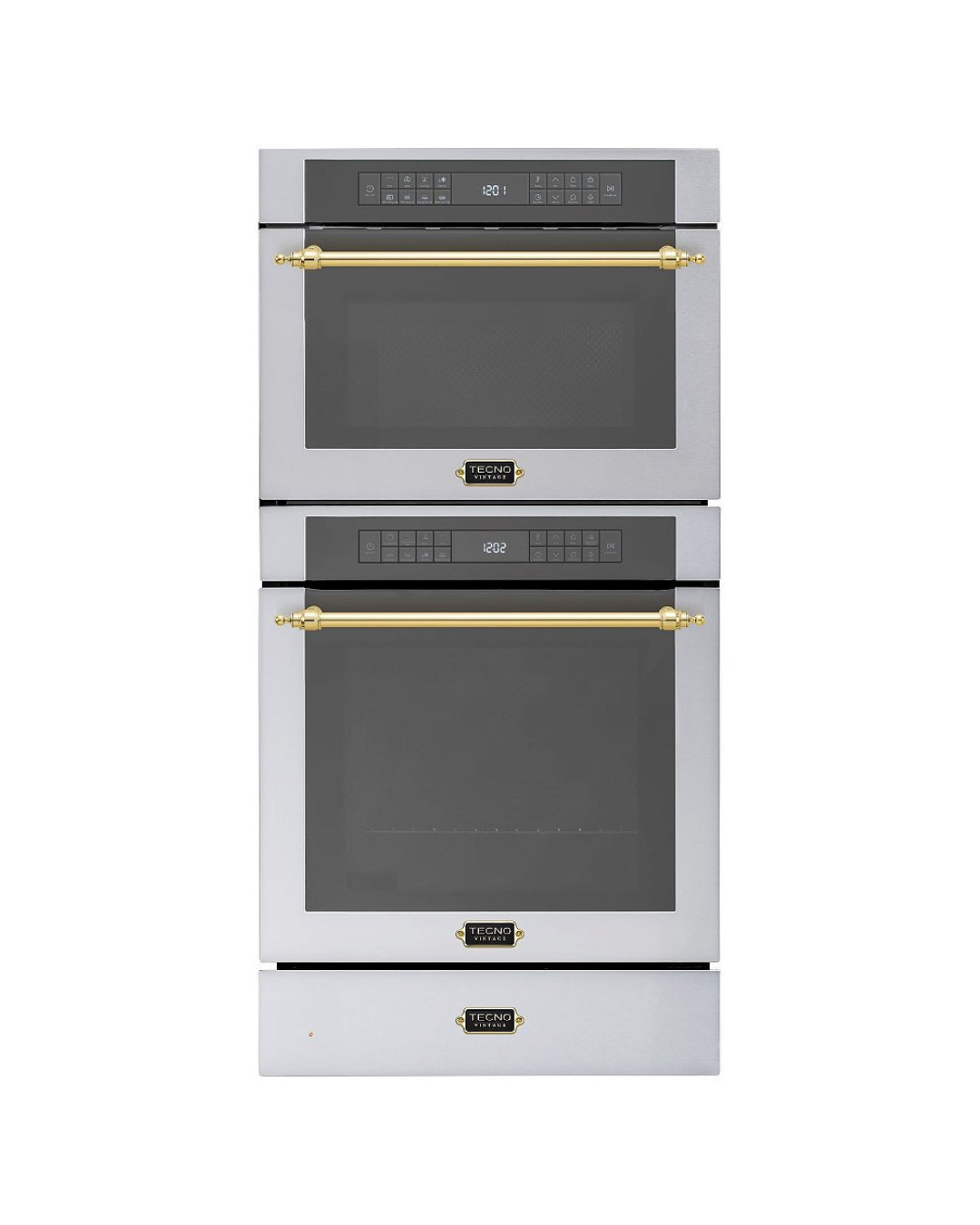 O forno combinado TK38EXDBV2 compõe elegantes conjuntos com os demais produtos da linha Vintage com os mesmos puxadores tubulares em latão.