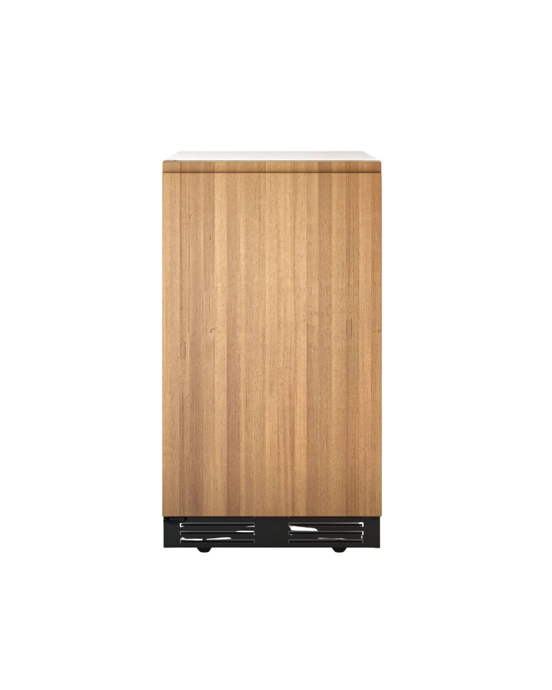 Escolha o acabamento e puxadores que desejar ao revestir a porta da máquina de gelo, criando um embutimento perfeito e alinhado com a frente dos móveis do ambiente, sem necessidade de frestas laterais para ventilação.