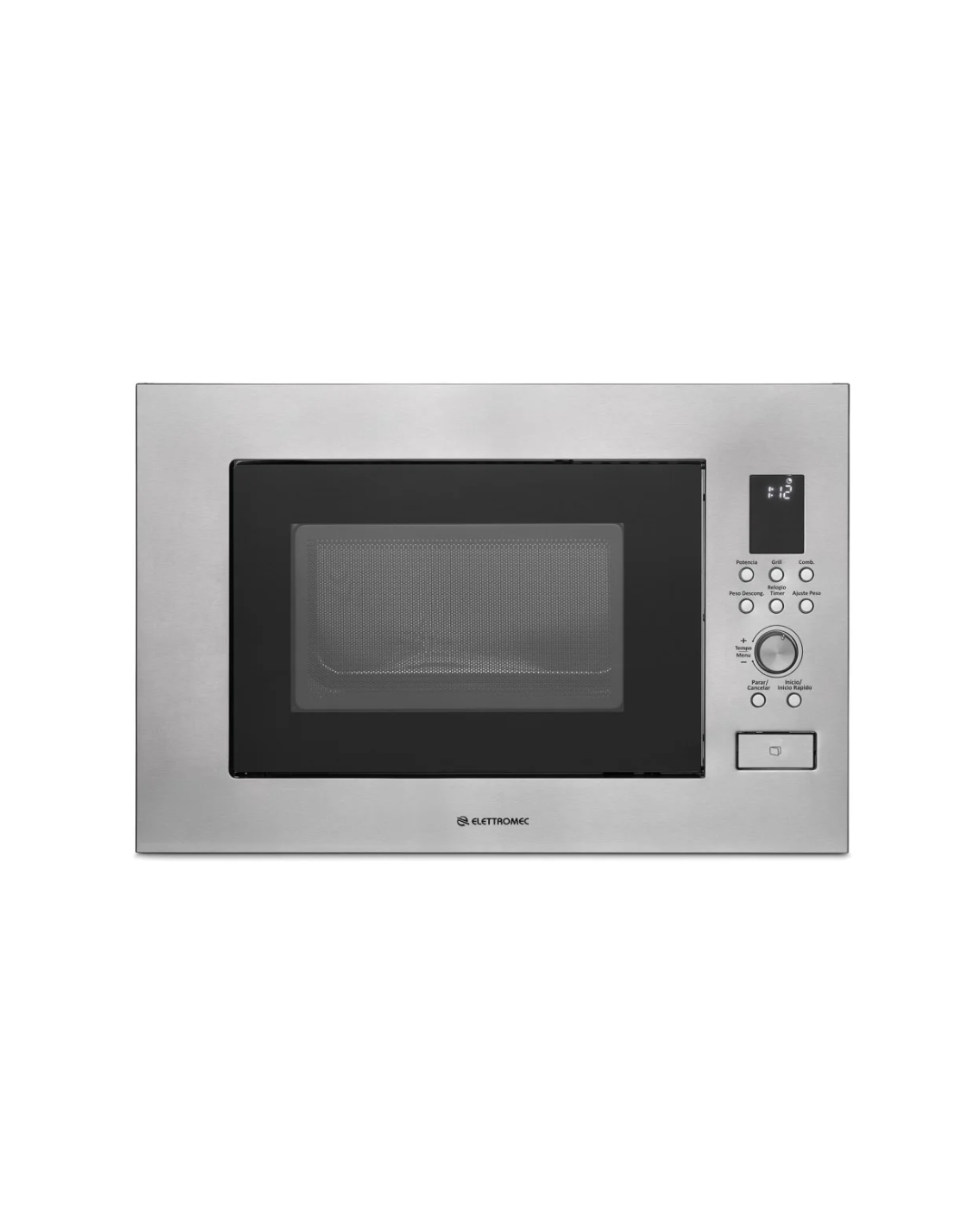 Micro-ondas com tecnologia flat Elettromec, proporciona maior aproveitamento do espaço interno, possui 8 programas de cocção e 2 combinados (grill+micro-ondas), bloqueio para crianças, timer digital e acabamento da moldura em aço inox.