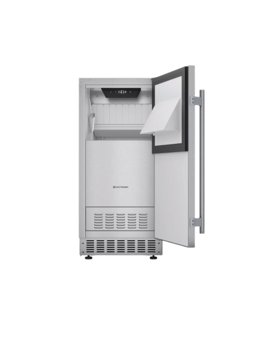 Com alta capacidade de produção de gelo, a nova Ice Maker traz funcionalidade para integrar cozinhas e áreas gourmets. Seu acabamento em inox e largura de 38 cm permite a combinação com outros produtos Elettromec para compor áreas gourmets sofisiticadas e funcionais.