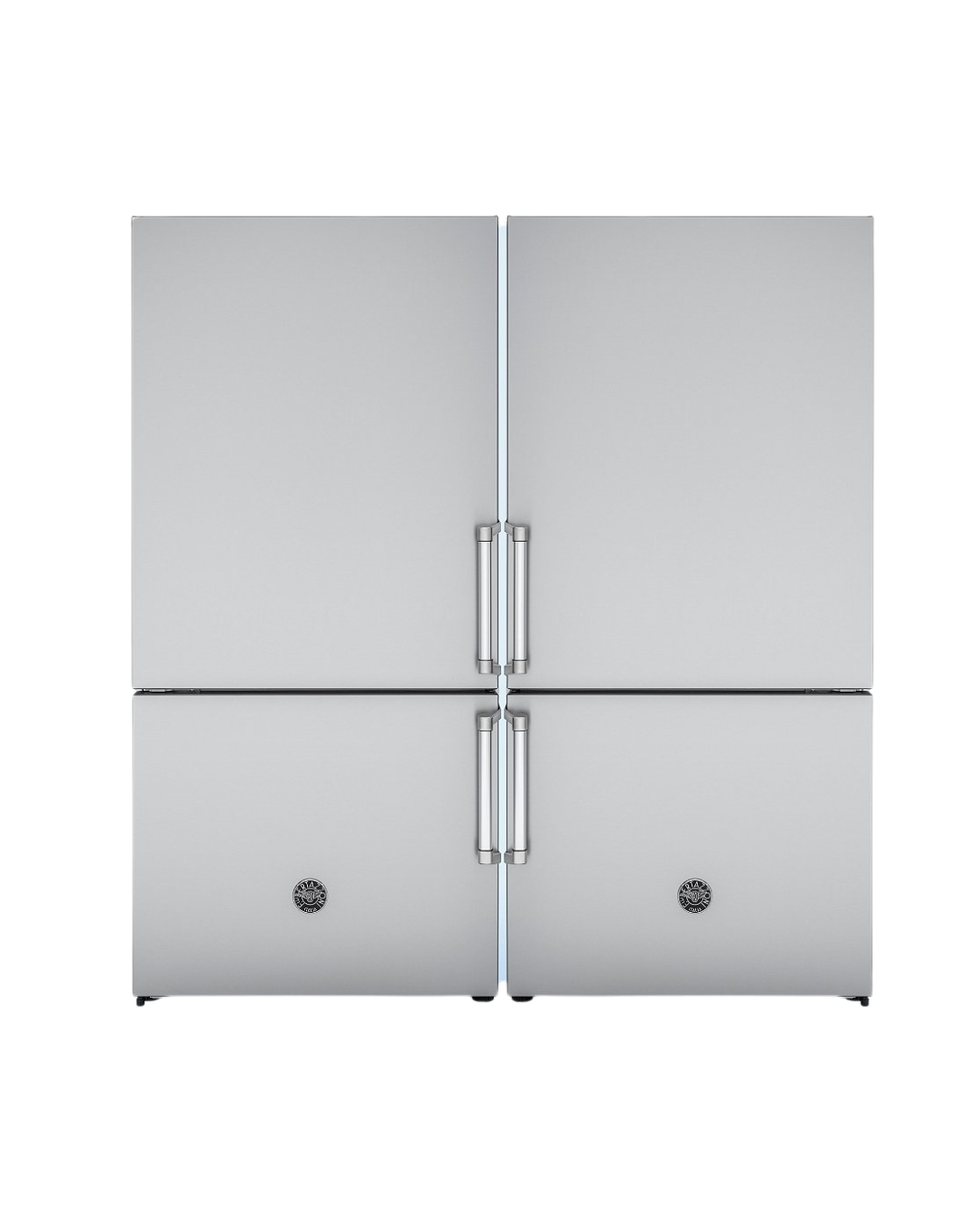 Suas portas são revestidas em aço inox anti-manchas com robustos puxadores tubulares, que compõe conjuntos completos com os demais produtos da linha Bertazzoni Master Series em sua cozinha.