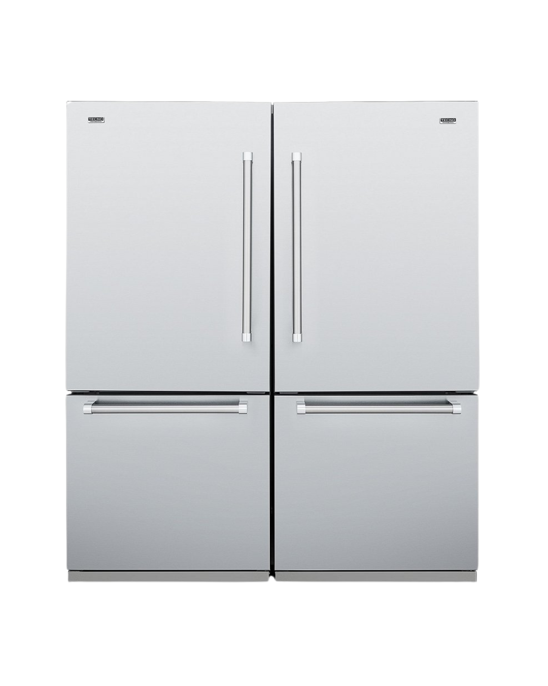 Bottom freezer de 152 cm em aço inox escovado anti-manchas com robustos puxadores tubulares que proporciona uma perfeita integração no piso ou embutido nos móveis de sua cozinha planejada, sem necessitar de frestas de ventilação.